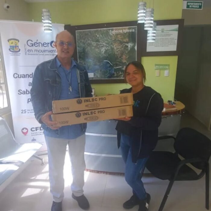 Por orden de la alcaldesa la Dra, Joselin Pichardo la joven comunitaria Winifer Duran recibe varias lámpara para ser colocada en un punto oscuro del sector Rancho Arriba en Sabana Iglesia.
